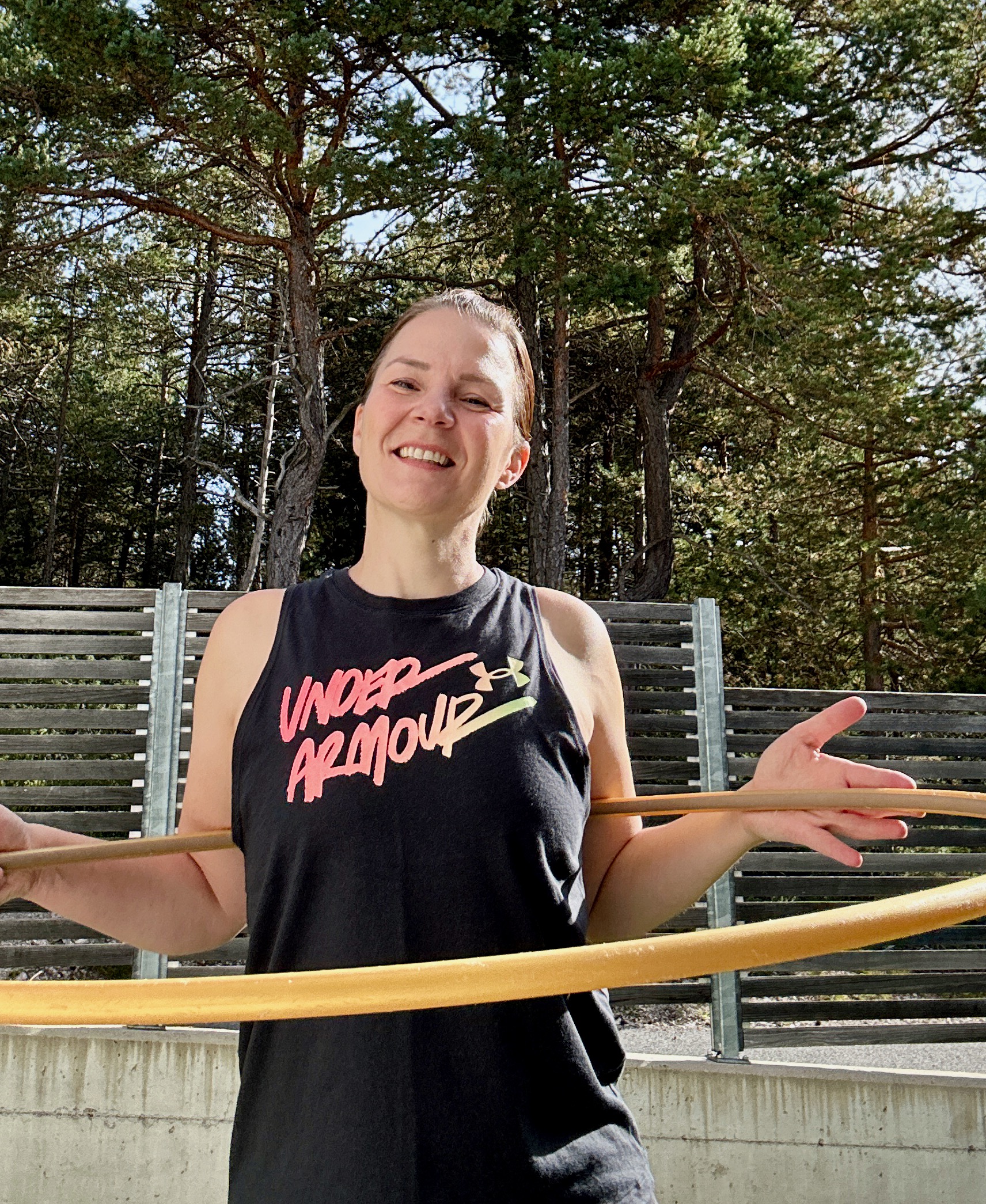 Während beim On-Body-Hooping oft viel zu schwere Reifen zum Einsatz kommen, mag ich es gern rückenschonend: Ich arbeite in meinen Kursen mit speziellen Fitness-Reifen (ca. 800 Gramm) und verwende für HoopDance ausschließlich Polypro-Reifen (vorwiegend Polypro aus Österreich). Damit auch du ein Erfolgserlebnis hast, gibt’s in meinen Kursen eine große Auswahl an Reifen – sicher ist auch für dich der passende dabei!